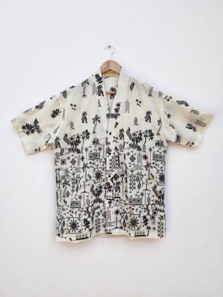 WHITE MONOCHROME FLORAL TAPED SHIRT
