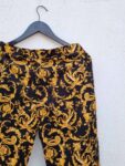 Make a bold statement with our baroque printed trousers. These eye-catching trousers feature an intricate baroque print in vibrant yellow gold, set against a sleek black background for a striking contrast. Crafted from high-quality fabric, they offer both style and comfort. The regular fit ensures a flattering silhouette, making them perfect for both casual and dressy occasions. Pair them with a solid-colored top to let the ornate design stand out, or mix with other prints for a daring fashion-forward look. Elevate your wardrobe with these luxurious baroque printed trousers, where classic elegance meets contemporary style.