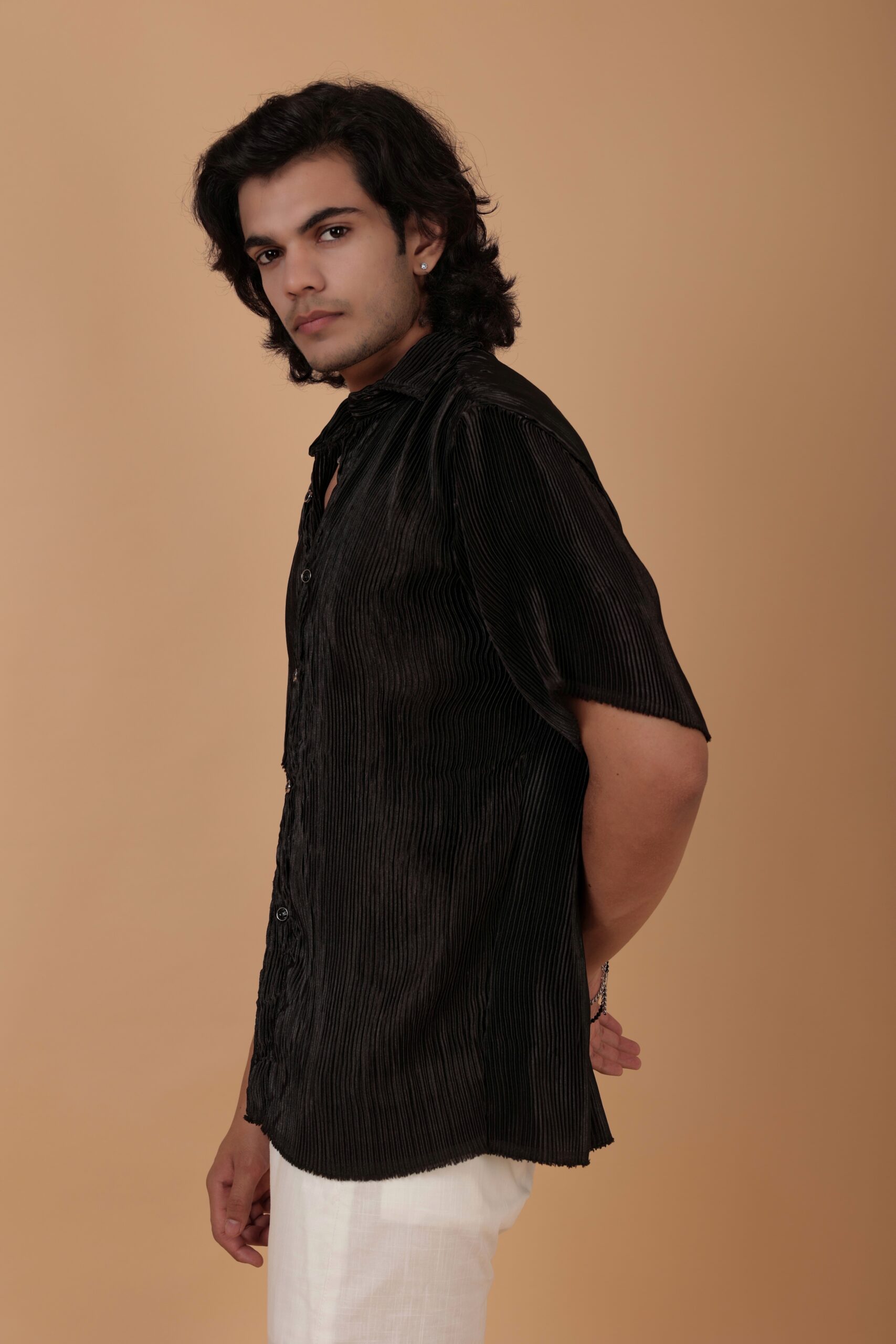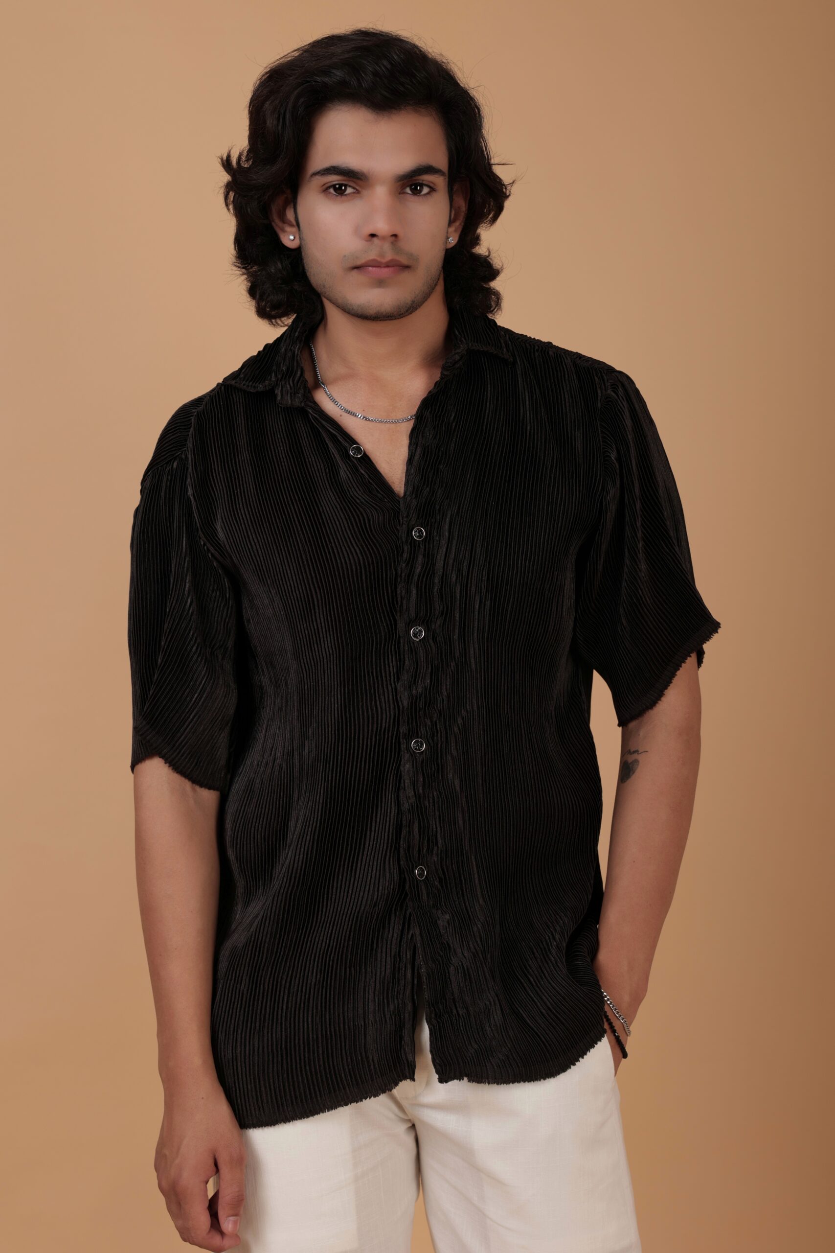 PLEATED SHIRT is a slim, pleated shirt. It is made from satin fabric, so it’s smooth and soft. The fit is slim, so it won’t hang off your body, but it’s not tight or constricting. This is the perfect shirt for any occasion!
