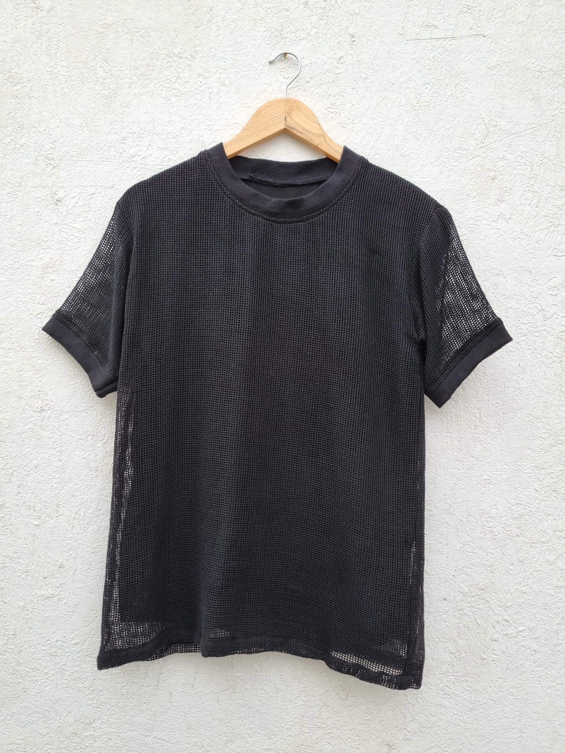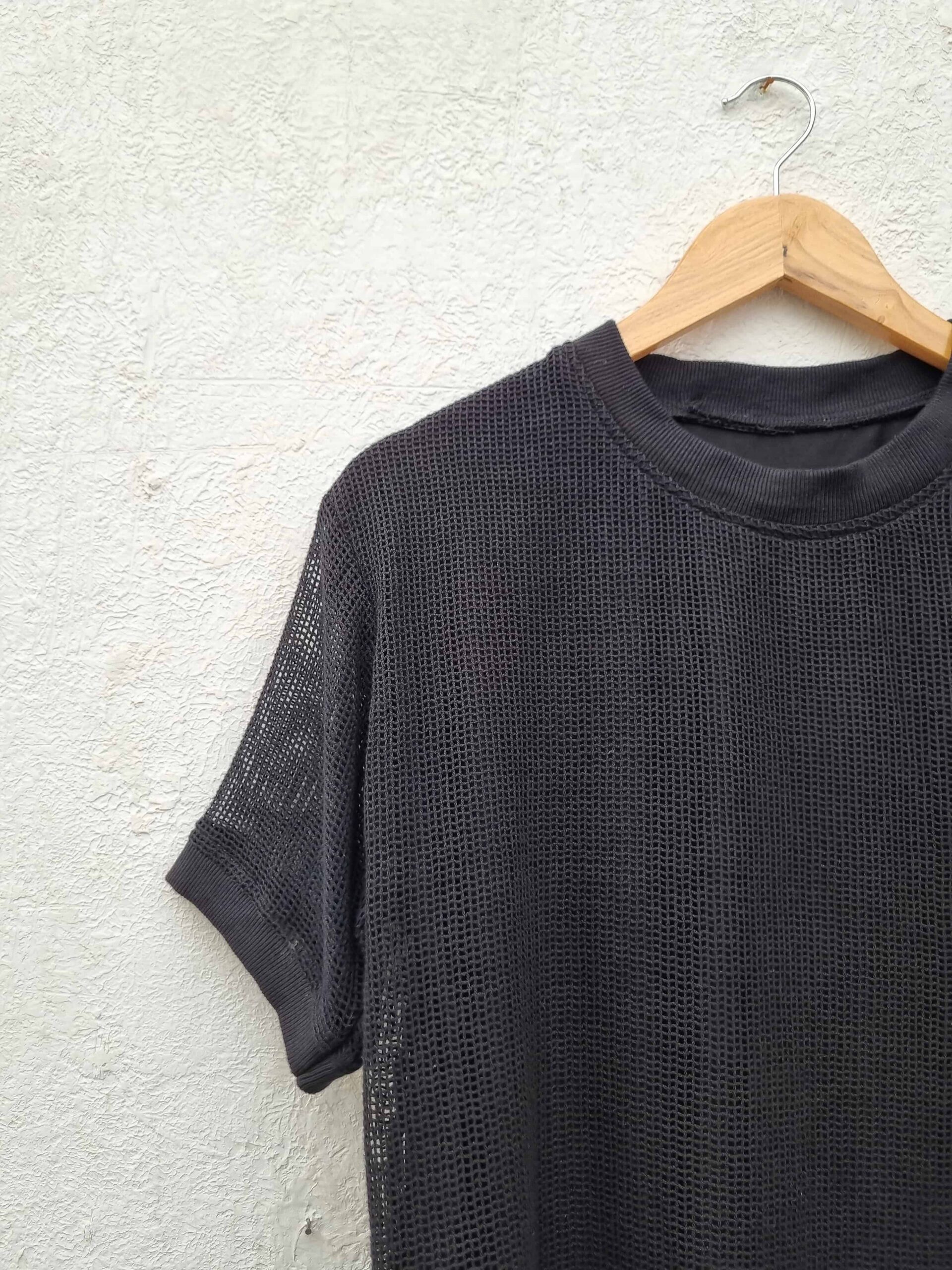 CREW NECK BLACK MESH T- SHIRT