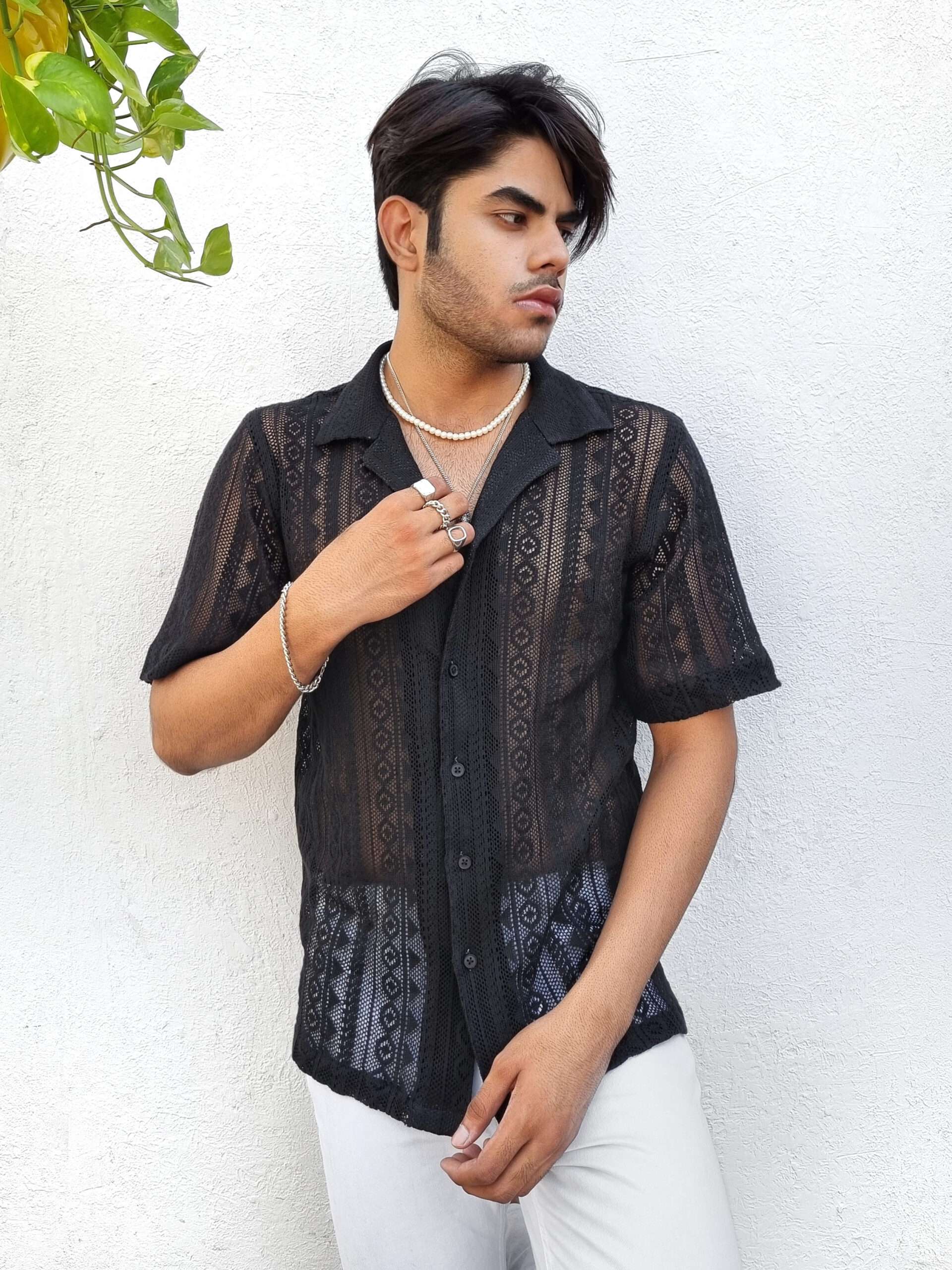 Introducing our exquisite Crochet Shirt with a Cuban Collar and Half Sleeves, a true embodiment of timeless elegance and modern fashion. Handcrafted with meticulous attention to detail, this unique piece seamlessly blends comfort and style, making it a must-have addition to your wardrobe.