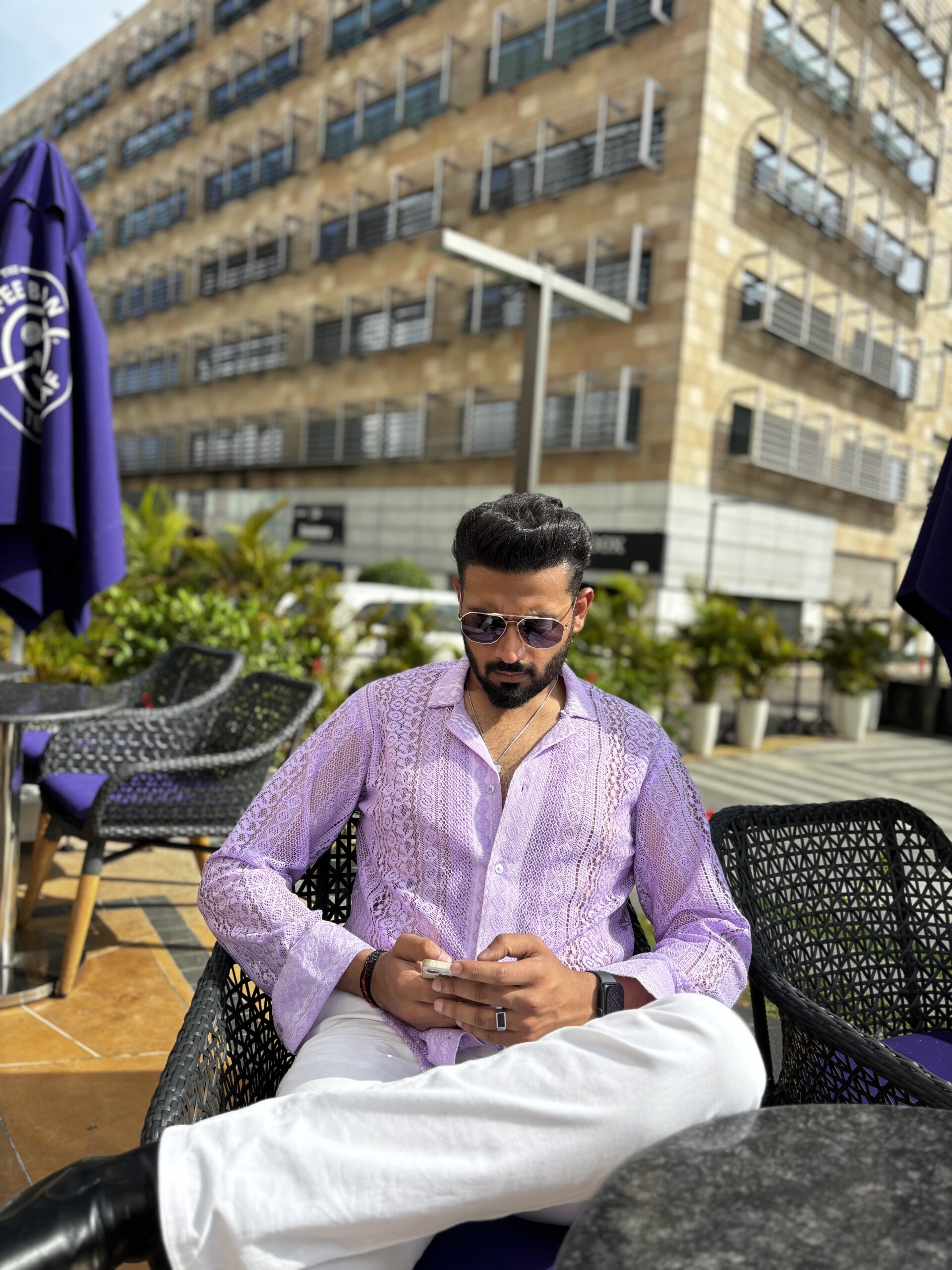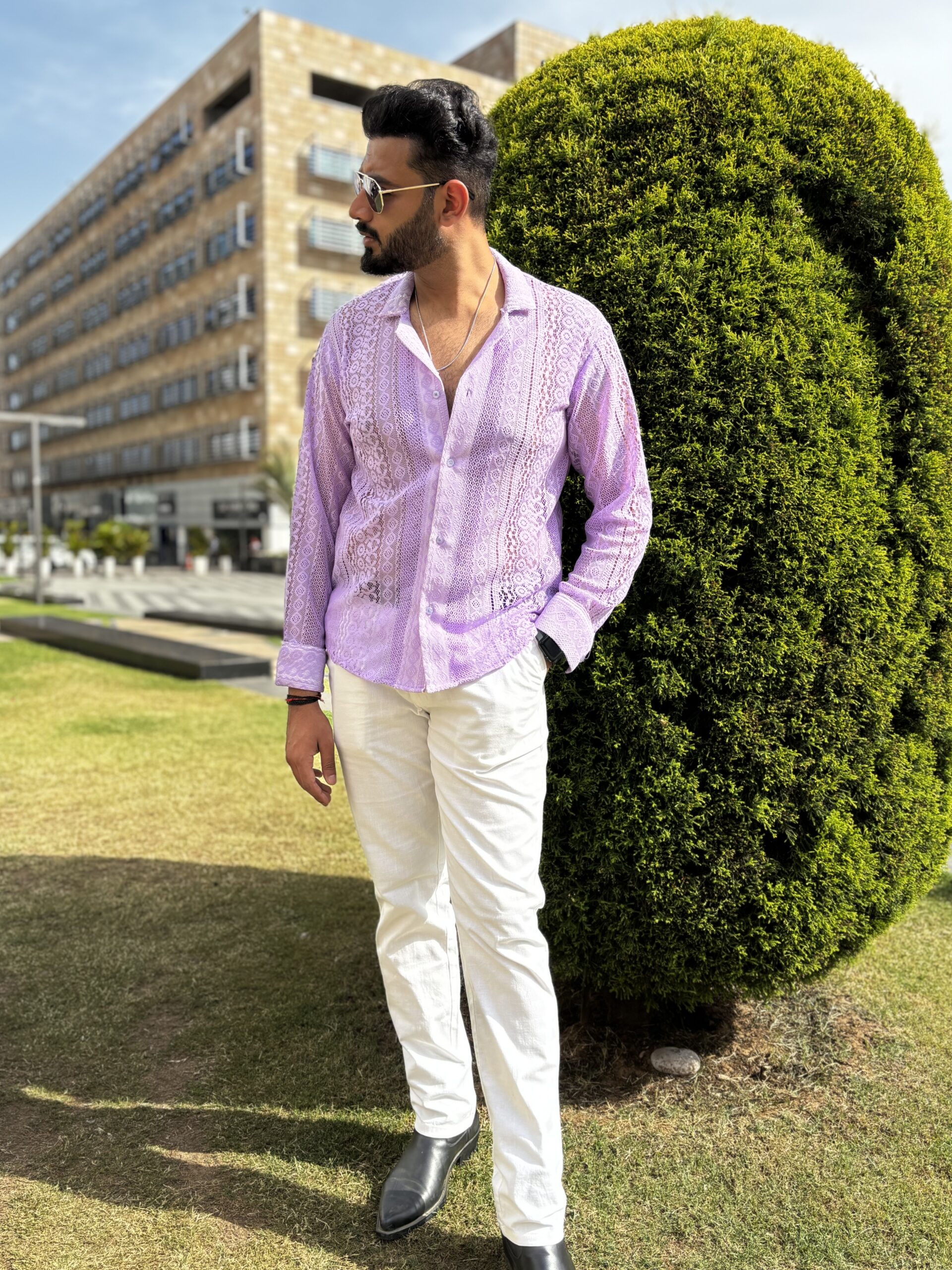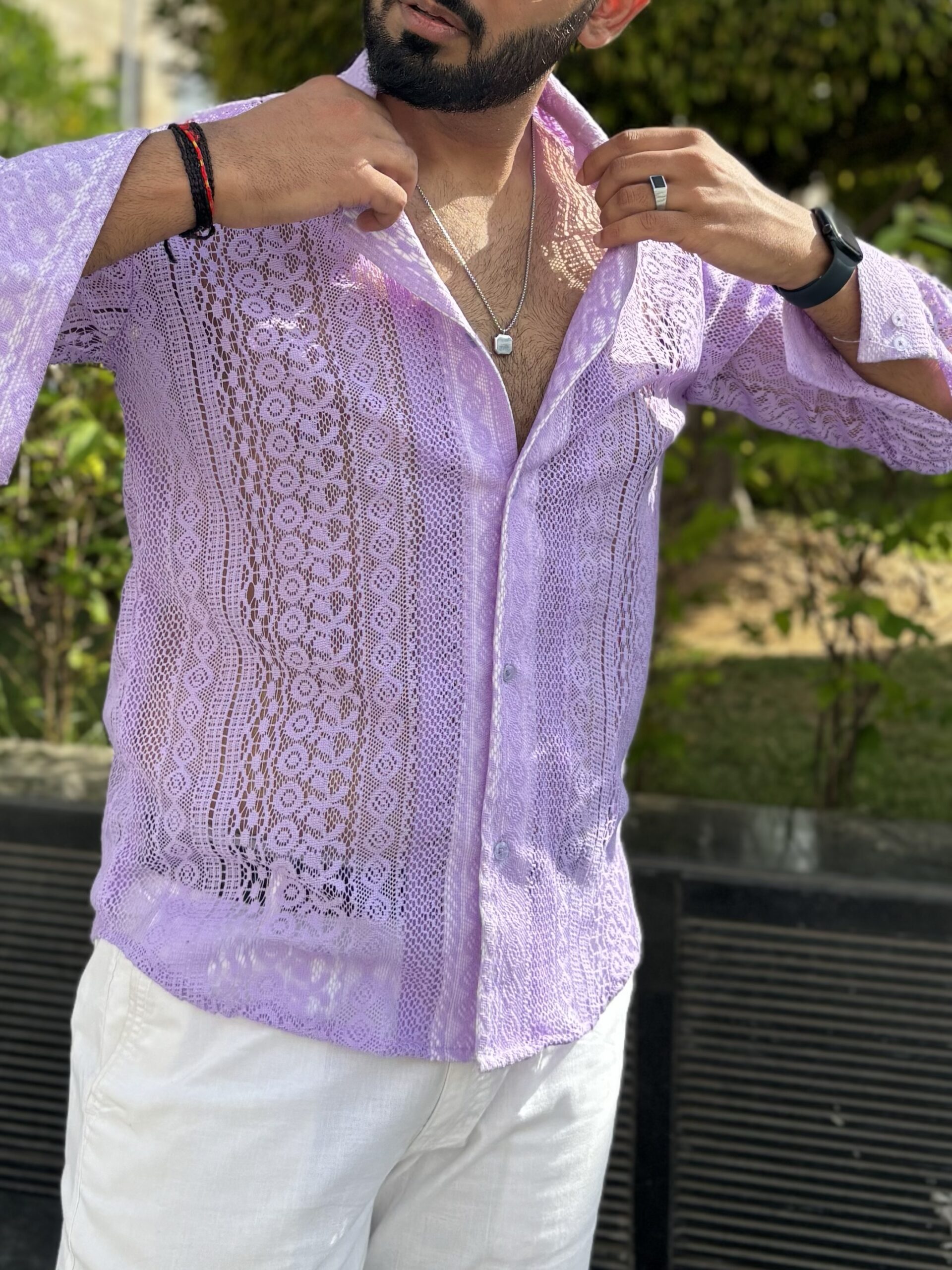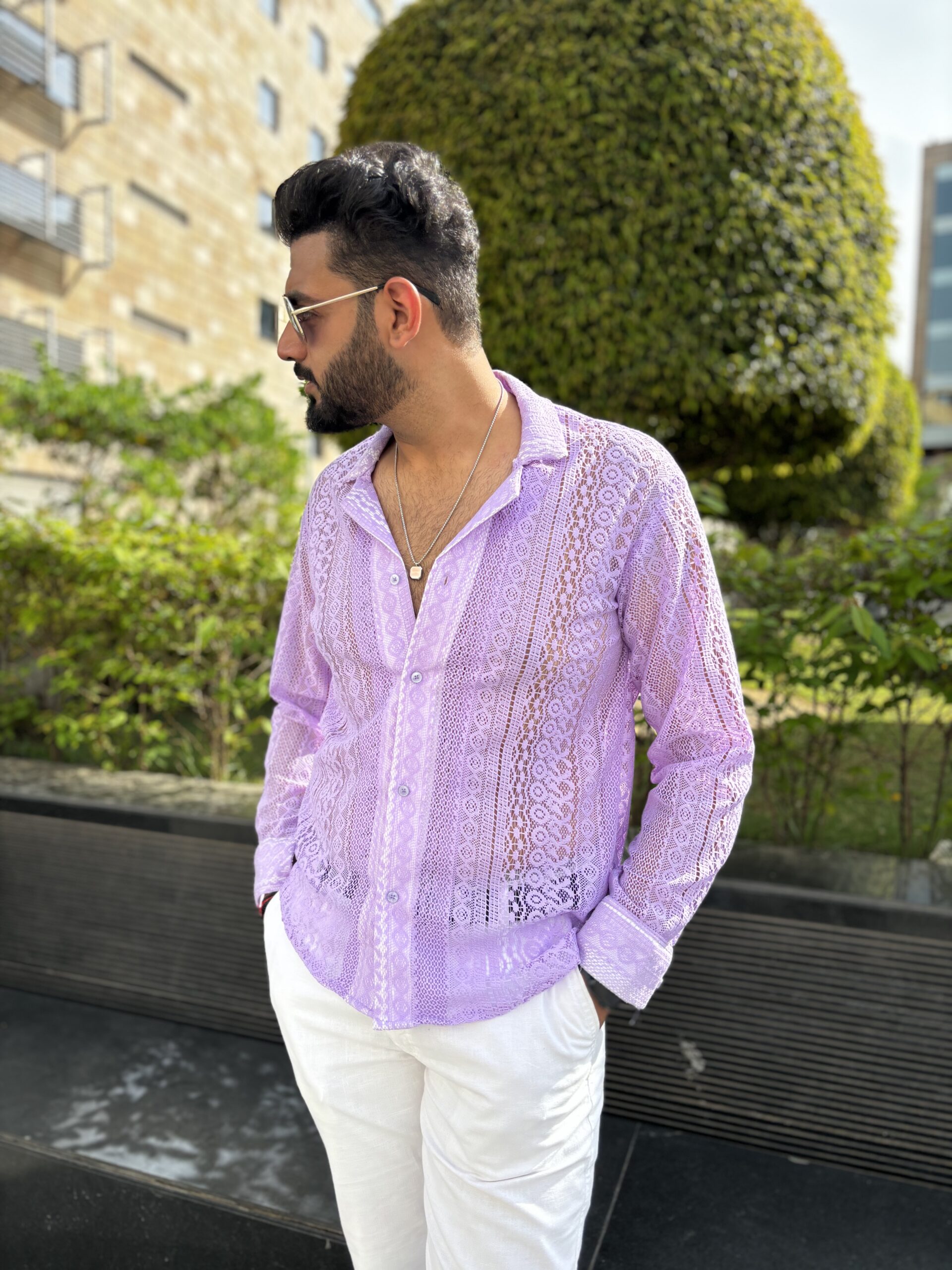 Introducing our Lavender Lightweight Crochet Shirt, a delicate and stylish addition to your collection. This shirt features an intricate crochet pattern in a soft Lavender hue, offering a elegant touch. Made from high-quality, lightweight yarn, it ensures breathability and comfort, perfect for warmer days. The relaxed fit and versatile design make it easy to pair with jeans, trousers, or shorts for a chic, effortless look. Whether you’re heading to a casual brunch or a day out in the sun, this crochet shirt adds a touch of sophistication and charm to any outfit.