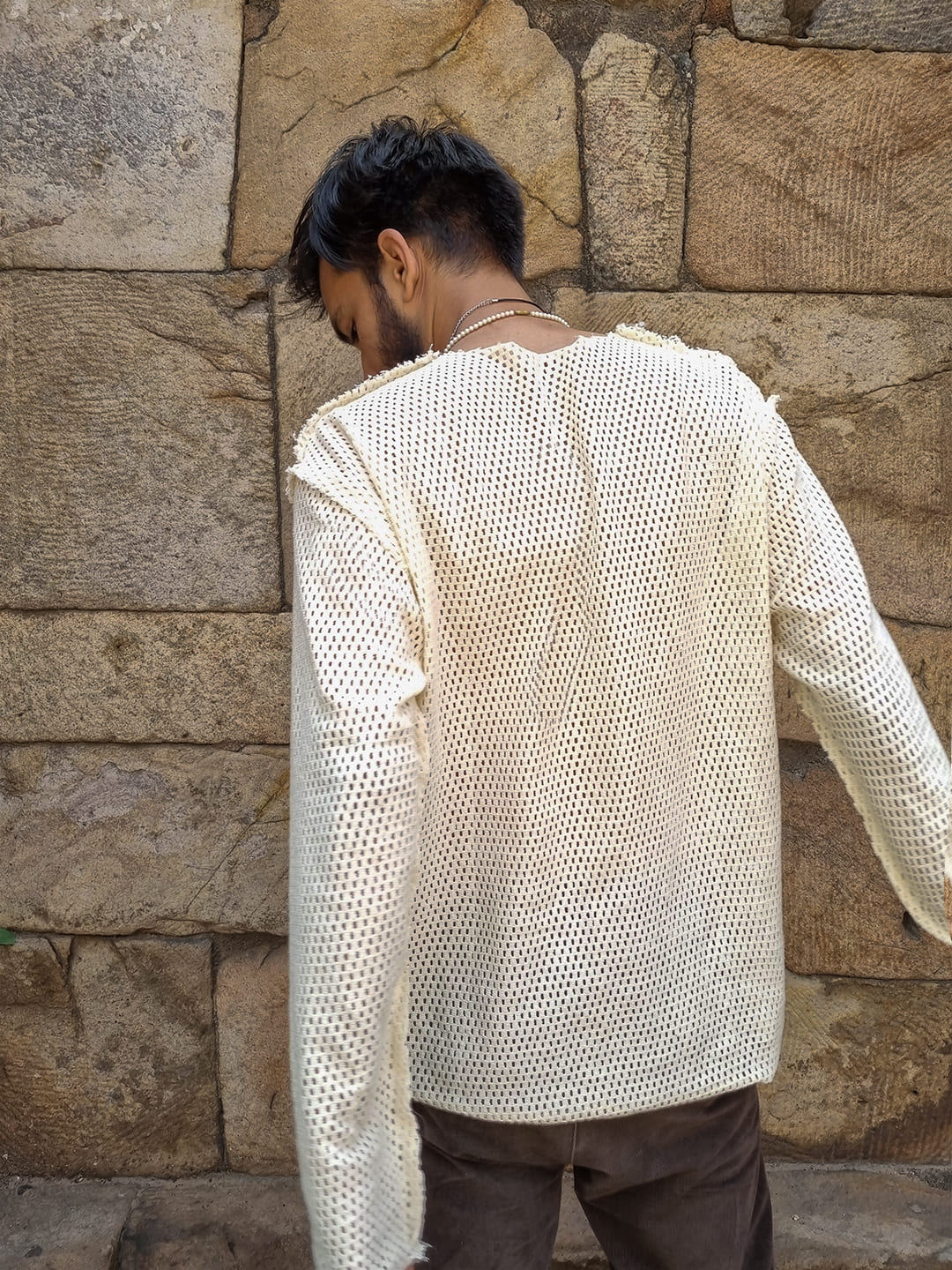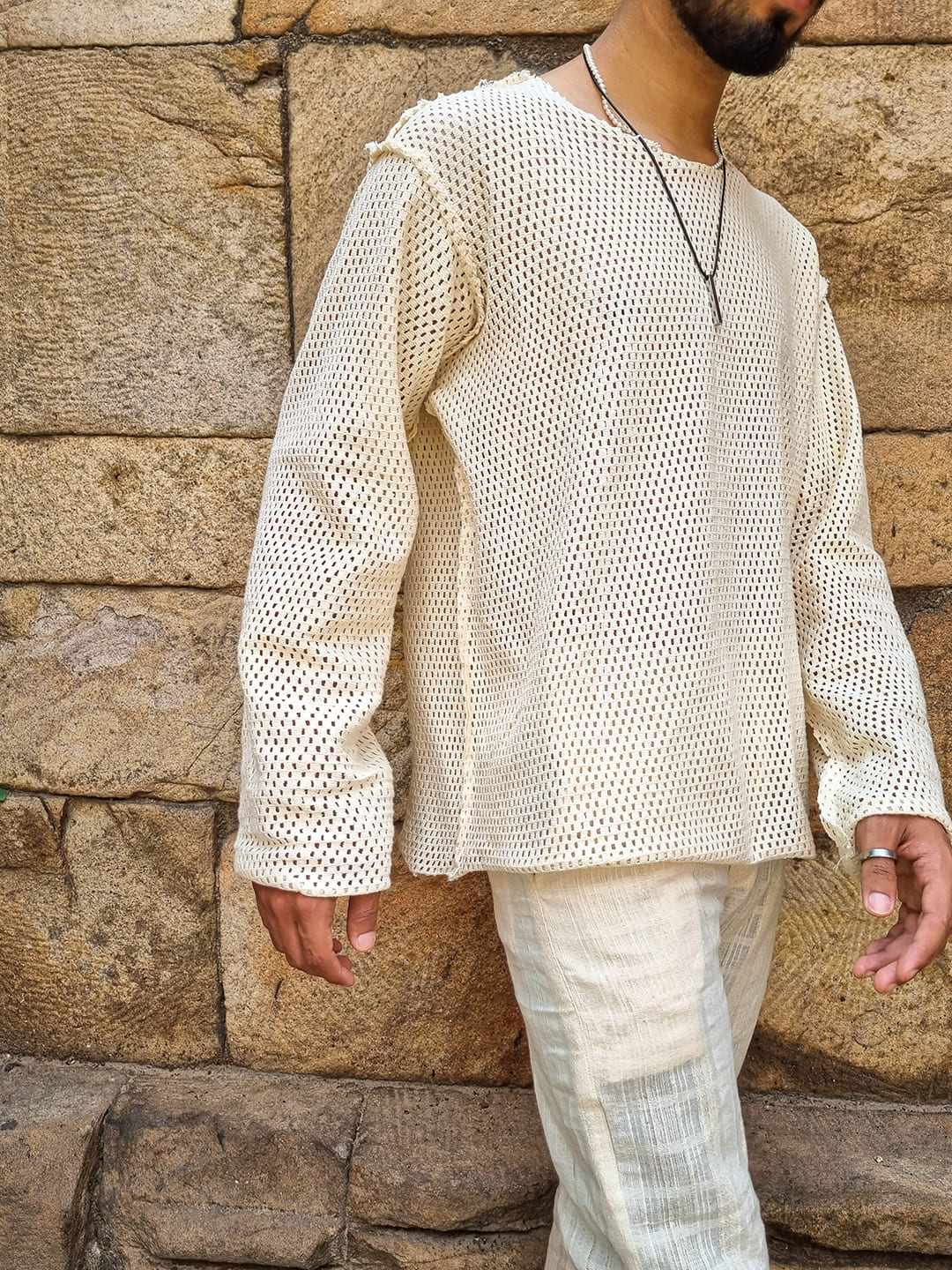 OVERSIZED CROCHET T SHIRT WITH RAW FINISHES