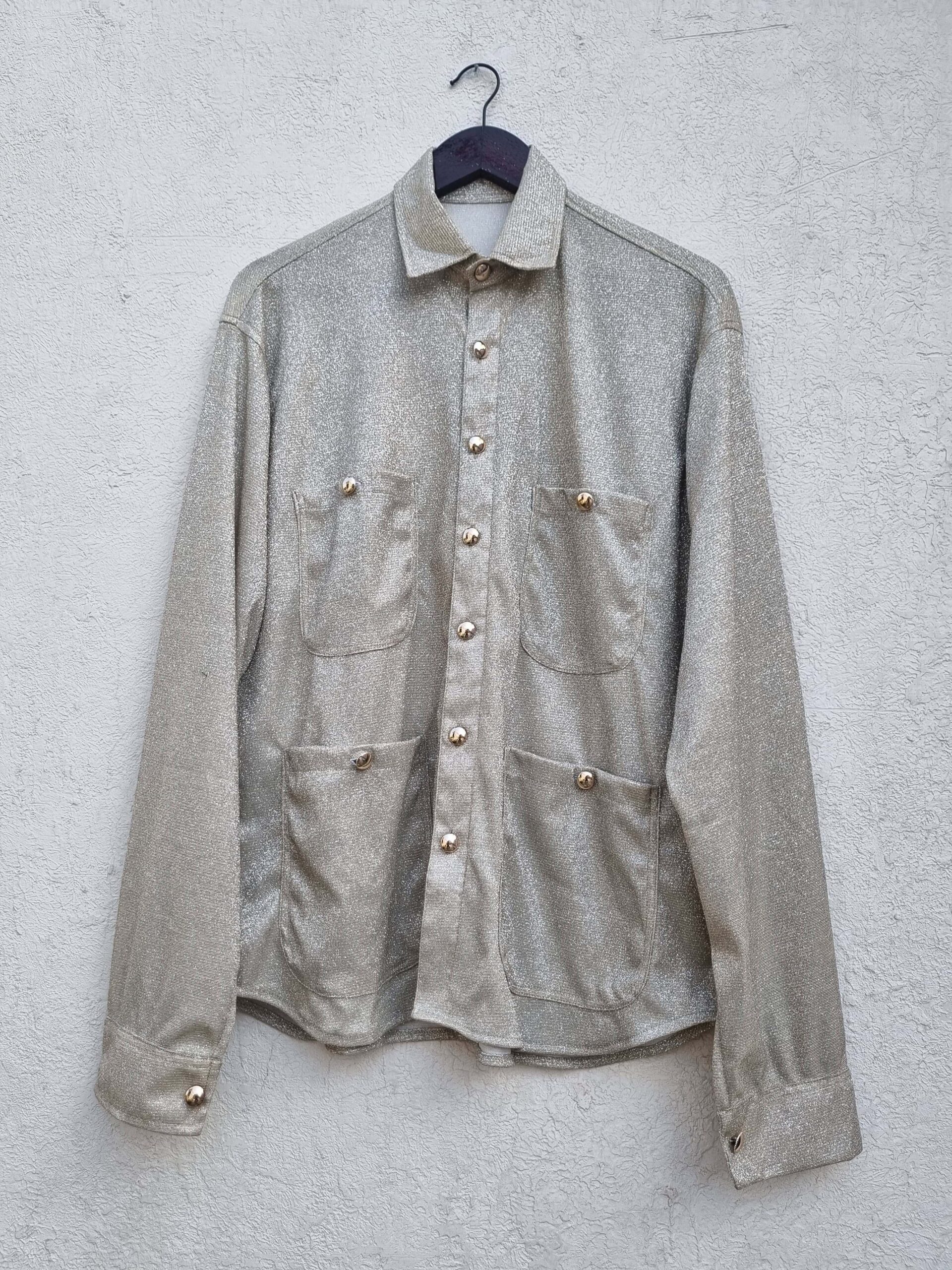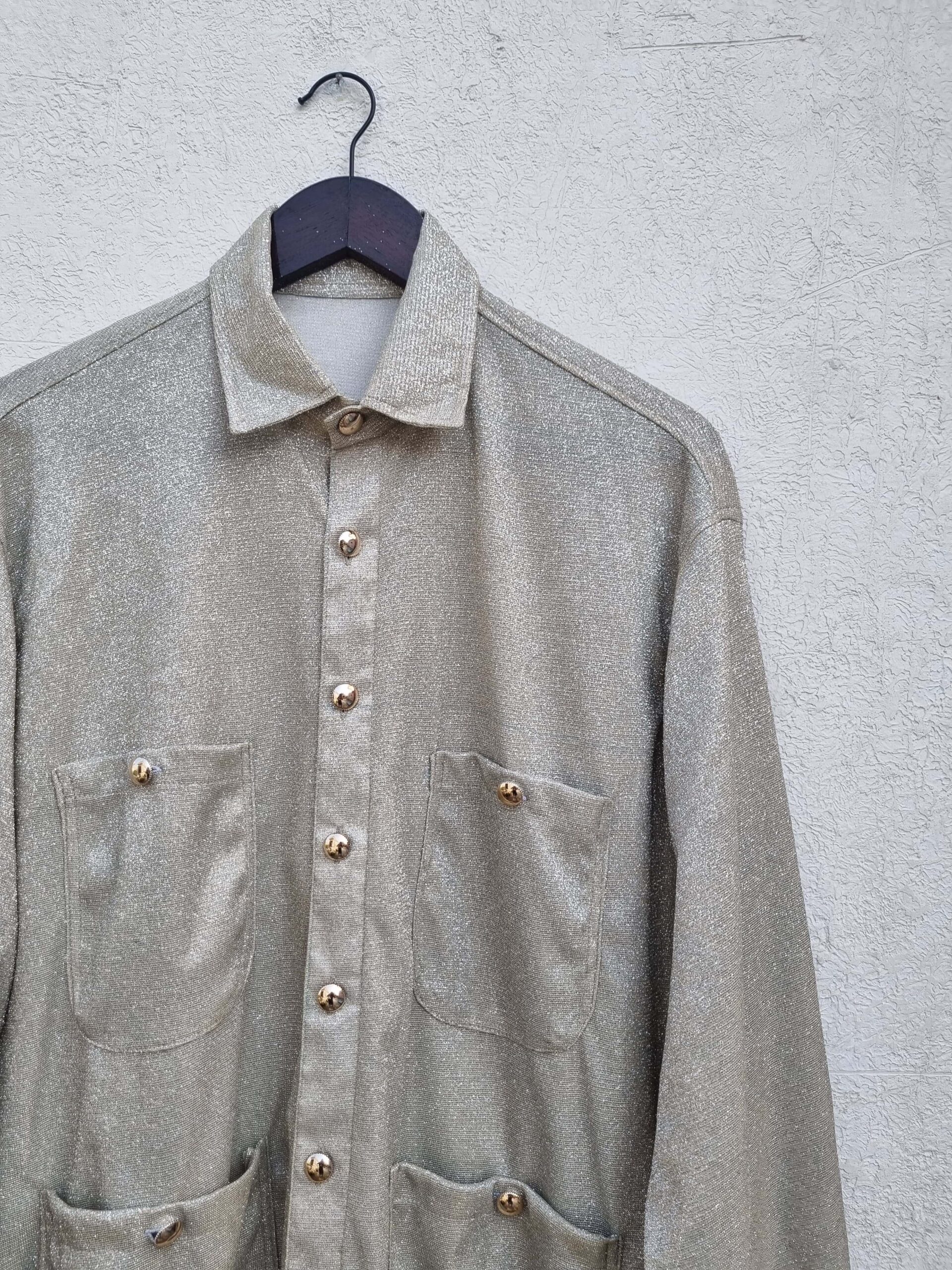 SILVER GLITTER SHIRT HAVING FOUR POCKETS