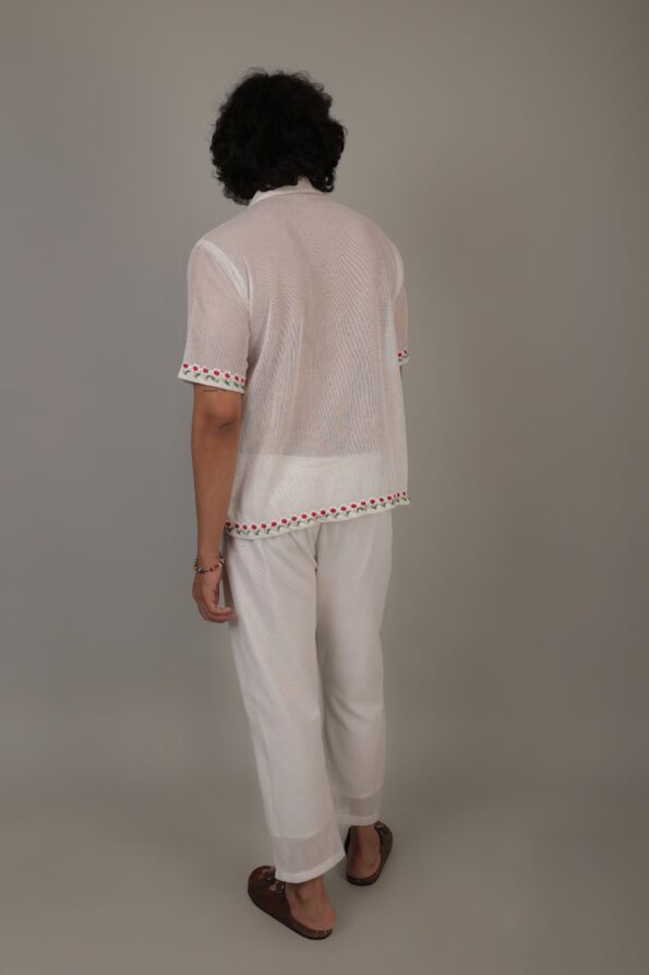 Introducing our White Cotton Mesh Co-ord Set, a vision of elegance inspired by the post-monsoon florals. This two-piece ensemble is meticulously crafted with breathable cotton mesh, offering comfort with a touch of sophistication. Adorned with delicate embroidered lace, the set captures the essence of nature’s beauty after the rain. The pristine white hue adds a timeless charm, creating a versatile outfit for various occasions. The coordinated top and bottom seamlessly blend modern chic with classic floral allure, making it a wardrobe essential. Elevate your style with the ethereal beauty of our White Cotton Mesh Co-ord Set, where grace meets contemporary fashion.