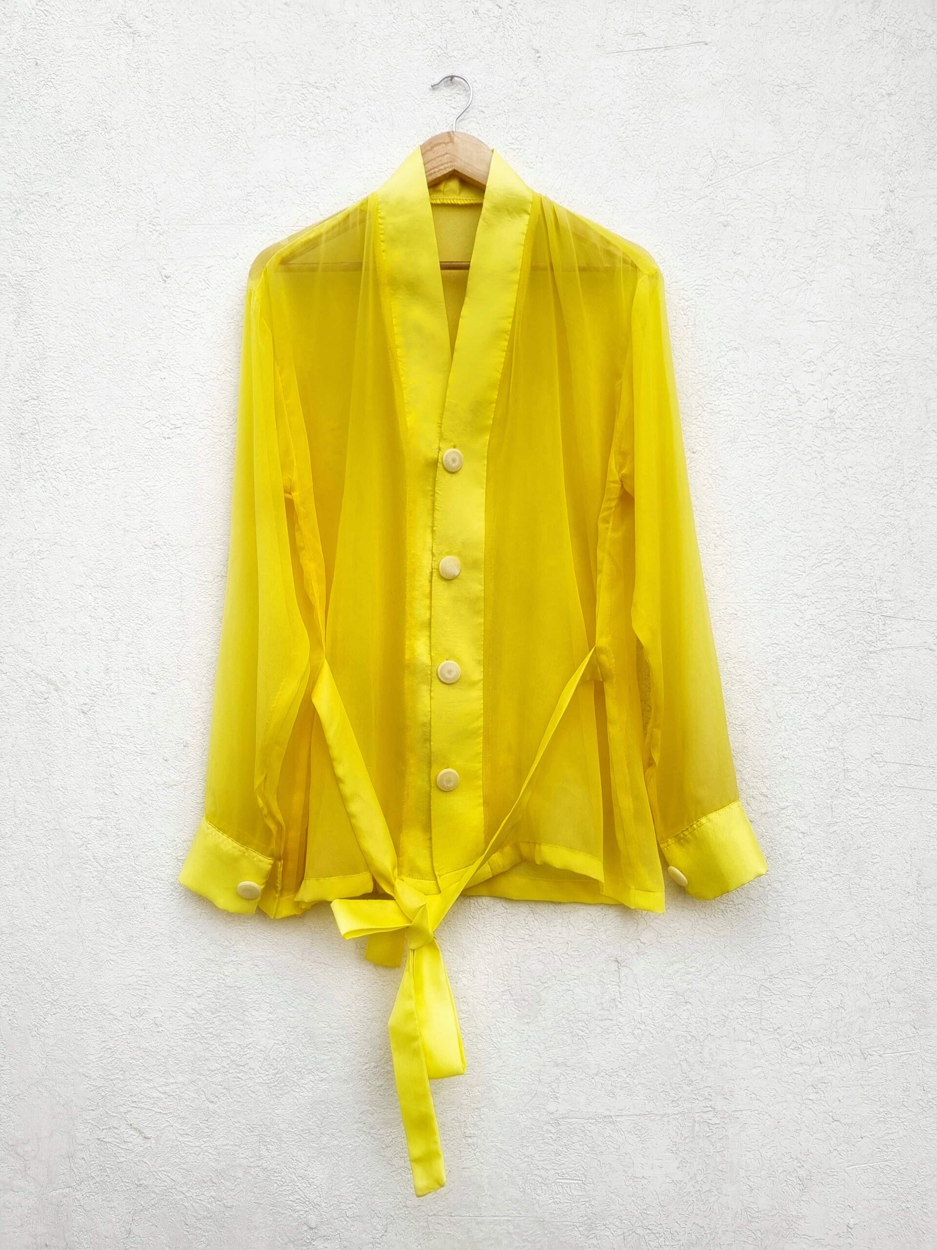 YELLOW SHEER SHIRT WITH A TIE-UP